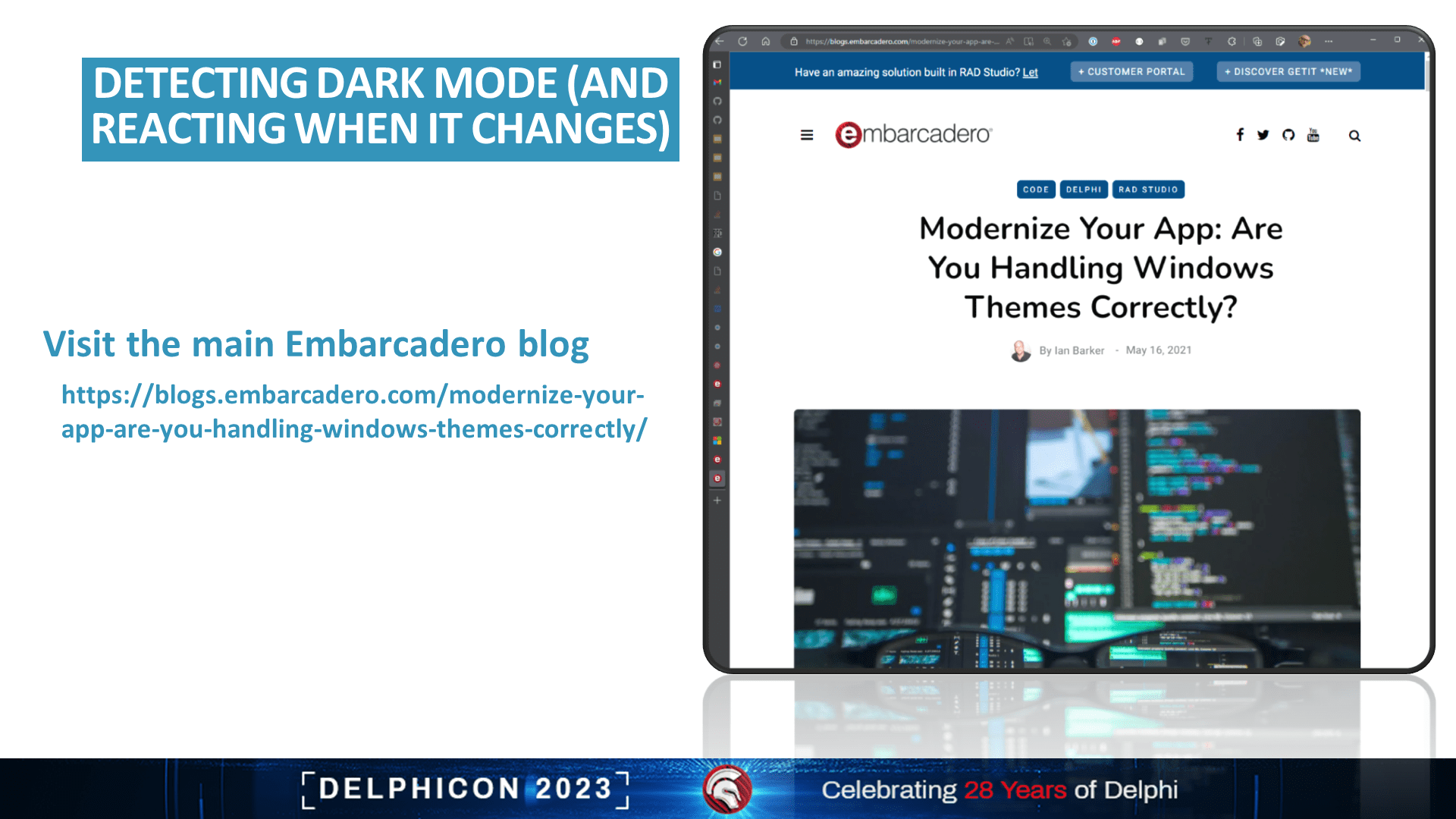 Ian is the Embarcadero Developer Advocate, a professional writer, presenter, and host. He is a prolific software developer, voice actor, designer and poet. Ian is British American, born in London, now living in Dallas, Texas. "I get up early every day and write code".