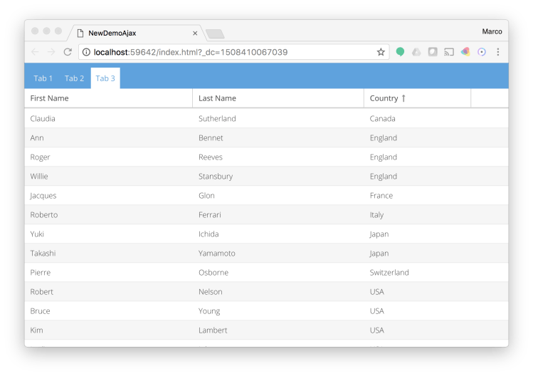 An EXtJS Grid for the UI