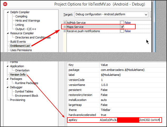 Para visualizar un Mapa en el control TMapView nuestra aplicación Android, debemos modificar un par de cosas en la configuración de proyecto.